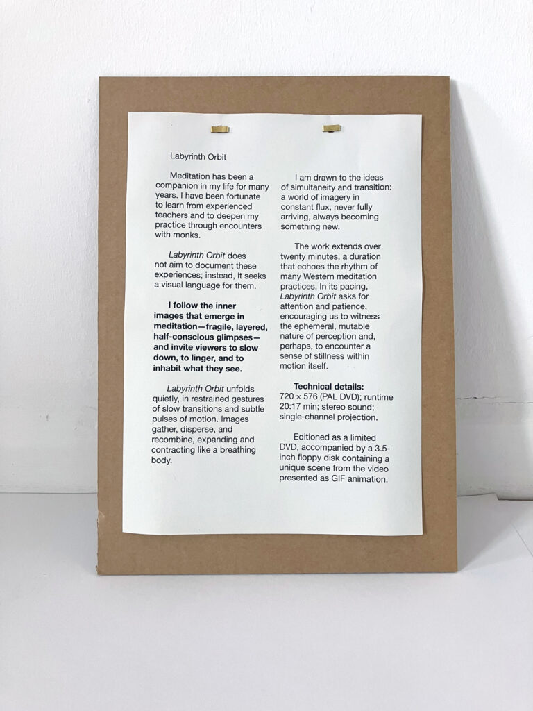 The work extends over twenty minutes, a duration that echoes the rhythm of many Western meditation practices. In its pacing, Labyrinth Orbit asks for attention and patience, encouraging us to witness the ephemeral, mutable nature of perception and, perhaps, to encounter a sense of stillness within motion itself.
