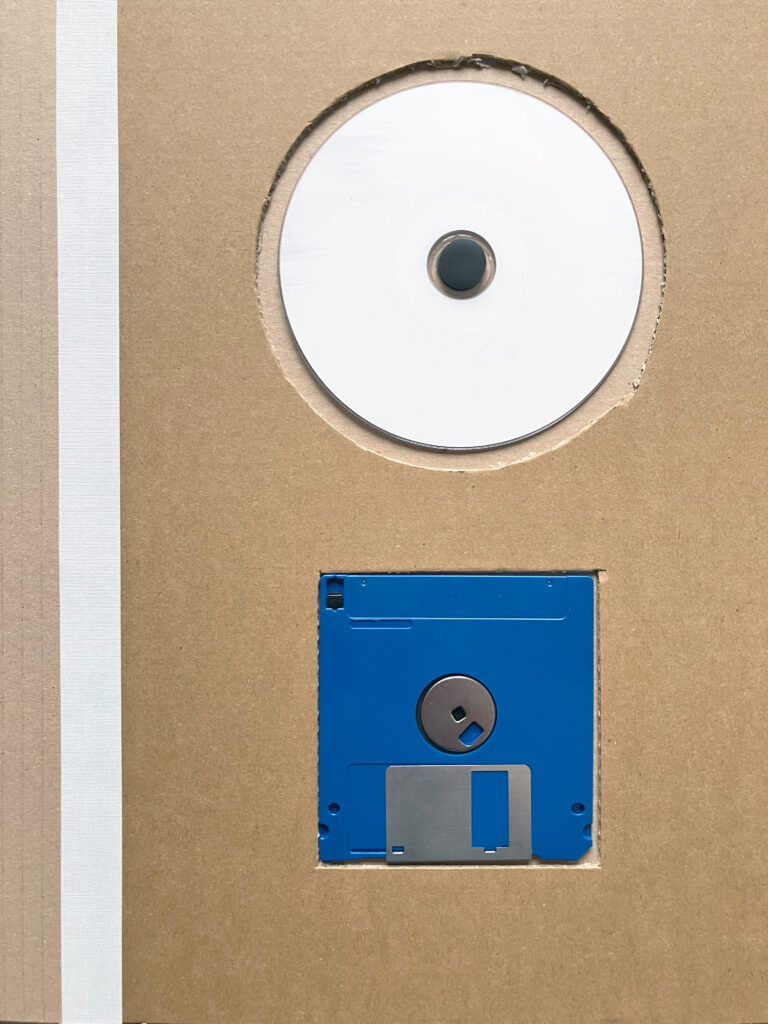 Editioned as a limited DVD, accompanied by a 3.5-inch floppy disk containing a unique scene from the video presented as a GIF animation, a set of C-type prints with cardboard display mounts, all housed in handmade sleeves of reused cardboard and contained within a plastic Euro box (approx. 30 × 40 cm).
