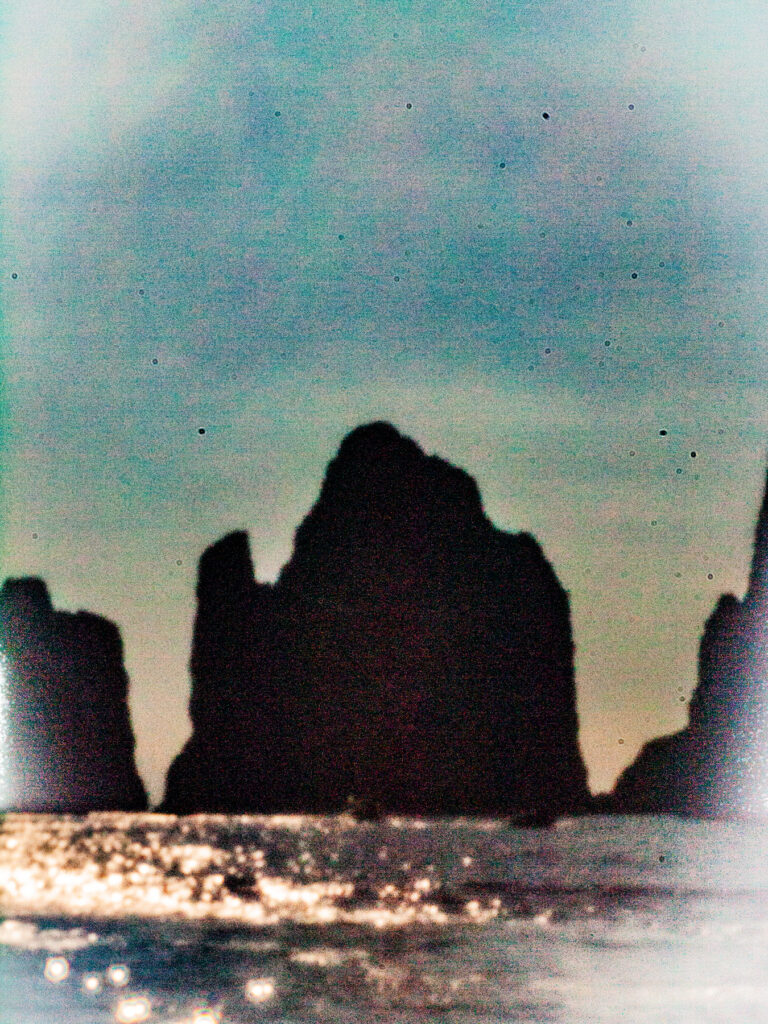 Most images are made with long exposure times. This is important. The camera does not observe; it drifts. Forms lose their edges, light becomes substance, shadows begin to breathe. The photographs slide toward the psychedelic, but not as effect. More as condition. I wanted to catch something unstable, the mysticism of the island, which cannot be fixed and resists clarity.
